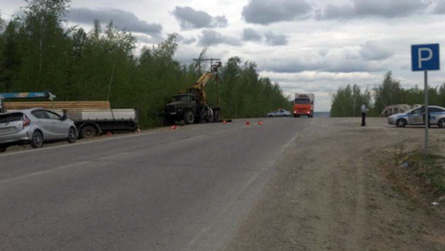 В Якутии грузовик Hinо наехал на стоящий на обочине «УРАЛ»