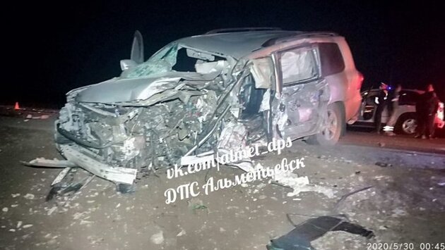 В Татарстане один человек погиб, за жизнь еще одного борются врачи после страшной аварии в Альметьевском районе. Кадры с места аварии опубликованы очевидцами в соцсетях. ДТП произошло в районе полуночи в возле села Новое Суркино. По предварительным данным, водитель автомобиля Toyota Land Cruiser влетел в полуприцеп КАМАЗа, после чего внедорожник отказался на обочине. Водитель внедорожника погиб на месте. Его пассажир доставлен с травмами в больницу, сообщают очевидцы. Ранее заместитель начальника УГИБДД МВД по РТ Александр Разумнов сообщил, что в Татарстане выявлен рост числа погибших в ДТП. С начала года на дорогах погиб 81 человек.