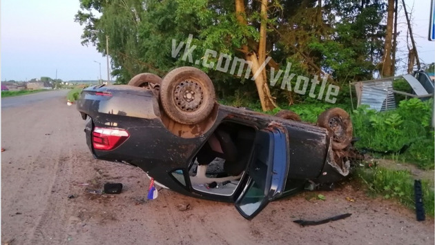 В Котельничском районе иномарка снесла остановку и опрокинулась