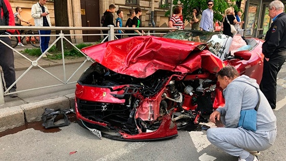 Кабриолет Ferrari California и такси Volkswagen Polo столкнулись около 16:30. Polo при повороте налево не уступил дорогу мчащемуся на большой скорости кабриолету.