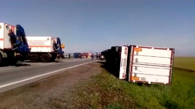 Как сообщили в МЧС, по состоянию на 8.30 13 июня 10 автомобилей поставили на колеса. На федеральной автомобильной дороге «Кавказ» в Ставропольском крае сильный порывистый ветер 12 июня опрокинул 11 автомобилей, среди которых 9 грузовых «газелей» и 2 фуры. В МЧС показали видео с места происшествия. На кадрах видно, как спасатели при помощи кранов ставят на колеса тяжелые грузовики. При этом движение по трассе не перекрыто, лишь на некоторых участках проводится по одной полосе. Как сообщили в МЧС, по состоянию на 8.30 13 июня 10 автомобилей поставили на колеса. Для работы задействованы 42 специалиста и 15 единиц техники, в том числе 15 человек и 4 единицы техники от МЧС. Ураган бушевал по всему краю. Некоторые поселки, а также дома в Минеральных Водах и селе Гражданское остались без света. Порывистый ветер сопровождался мощным ливнем.