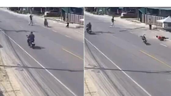 Дорожный инцидент, к счастью закончившийся без серьёзных последствий, в начале июня попал в объектив камеры наружного наблюдения на автотрассе в тайской провинции Наратхиват. Двое рабочих, переносивших длинную металлоконструкцию через автомобильную дорогу, стали виновниками падения мотоциклиста, который, судя по кадрам записи, не заметил препятствия на своём пути. Рабочие помогли подняться участнику дорожного движения, после того, как он преодолел несколько десятков метров без своего мотоцикла. Прибывшие полицейские решили не вмешиваться в урегулирование спора и предложили рабочим договориться о компенсации с пострадавшим мотоциклистом.
