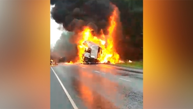 Сгорел за пять минут: в Московской области столкнулись две фуры