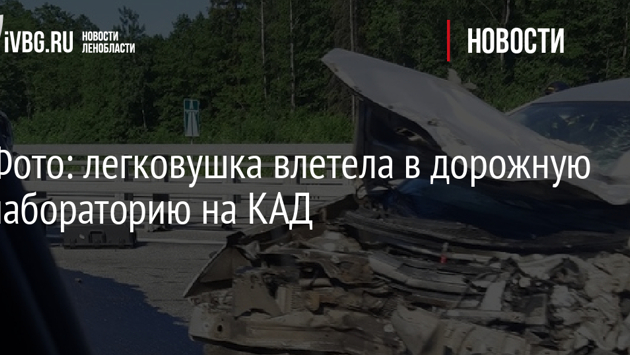 Фото: легковушка влетела в дорожную лабораторию на КАД