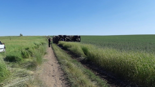 В Волгоградской области на проселочной дороге опрокинулся КамАЗ