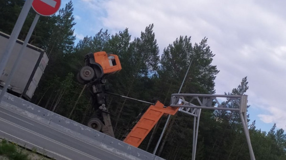 На трассе в ХМАО грузовик встал на дыбы
