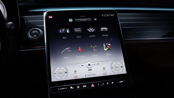В сентябре состоится премьера нового поколения седана Mercedes-Benz S-Class, который является флагманом легковой линейки немецкой марки, но уже сейчас фирма раскрыла детали о мультимедийной системе модели. Автомобиль получит сразу 5 экранов в салоне, гигантский проекционный дисплей и ряд других особенностей. Фирменный интерфейс MBUX (Mercedes-Benz User Experience) на новом S-Class дебютирует в своём втором поколении. Автомобиль получит цифровую панель приборов, большой экран на центральной консоли (он позволит отказаться сразу от 27 физических переключателей и за доплату может быть выполнен по технологии OLED), а также три экрана сзади — два в спинках передних кресел и один в подлокотнике заднего дивана. В оснащение войдут два проекционных дисплея, различающихся своими размерами и возможностями. 12,3-дюймовая цифровая панель приборов получит функцию 3D-изображения — два дисплея в сочетании со стереокамерой будут отслеживать направление взгляда водителя и формировать объёмную картинку без необходимости использования особых очков. Дополнить такую приборную панель можно будет проекционным дисплеем AR-HUD, который будет формировать изображение на расстоянии 10 м от машины, причём картинка окажется эквивалентной по размеру и качеству изображению на 77-дюймовом экране. Проекционный дисплей будет сочетаться с опцией дополненной реальности. В оснащение модели войдёт продвинутый голосовой ассистент Hey Mercedes, который позволит водителю общаться с автомобилем с помощью Chit-Chat, менять настройки или получать информацию о работе тех или иных функций. Система понимает 27 языков и обучается в процессе эксплуатации автомобиля, в том числе получая обновления через интернет, чтобы лучше понимать водителя. Также MBUX можно интегрировать в "умный дом" для управления им из машины. Пассажиры на заднем диване с помощью своих экранов смогут обмениваться контентом друг с другом или отправлять настройки навигации на мультимедийную систему водителя. При этом часть второстепенных настроек автомобиля можно менять удалённо. Новое поколение MBUX поддерживает до 7 аккаунтов владельцев — доступ к персональным настройкам можно закрыть паролем, отпечатком пальца, распознаванием лица или голоса человека, QR-кодом из приложения Mercedes App или всеми способами сразу. Все настройки хранятся онлайн и могут различаться как для каждого конкретного сиденья в S-Class, так и для машины в целом — обещано, что владелец сможет "передавать" настройки онлайн в другой Mercedes-Benz с новым MBUX. С помощью системы Interior Assist автомобиль будет распознавать усталость водителя, чтобы предотвращать опасные ситуации на дороге, также электроника сможет контролировать правильность установки детского кресла на переднем сиденье, станет предупреждать пассажиров, если они попытаются выйти перед приближающимся посторонним автомобилем. Открывать люк можно будет жестом, а шторки на боковых окнах автоматически поднимутся или опустятся, если просто посмотреть через плечо.