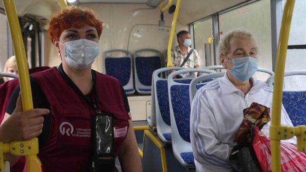 Об этом сегодня сообщил заместитель руководителя департамента транспорта администрации города Игорь Манченко. «В автобусах ежедневно проверяют соблюдение «масочного» режима как пассажирами, так и водителями и кондукторами. Проверено более 1800 транспортных средств, проведены тысячи бесед. Сдвижка есть - сегодня 95-97% пассажиров используют маски», - рассказал Игорь Манченко. Он добавил, за время проверок с линии сняли более 80 автобусов разных маршрутов, а в отношении пассажиров составлено семь протоколов за несоблюдение «масочного» режима. Марьяна Антонюк, кондуктор маршрута №12, подтверждает сознательность красноярцев. «Пассажиры у нас молодцы. В первое время были конфликты по поводу ношения масок, но теперь люди хорошо себя ведут - редко кто забывает их дома. Я сама иногда с такими делюсь своими масками. В основном все относятся к правилам с пониманием», - рассказала она. Также Манченко напомнил, что дезинфекция городского общественного транспорта проходит пятый месяц. Схема отработана. Машины обрабатывают специальными дезинфицирующими средствами несколько раз в день: вечером при заезде в гараж и на конечных остановках во время перерывов. После каждого рейса кондукторы протирают поручни и поверхности в салонах. «Транспортные средства сначала проходят обработку на мойке, а потом уже специализированные фирмы дезинфицируют - обрабатывают все открытые поверхности салона: поручни, ручки сидений, боковые панели и двери с помощью специального распылителя. Ежедневно такую «процедуру» проходят 700 автобусов», - заключил он. Добавим, что на пассажирских предприятиях усилен контроль за состоянием здоровья сотрудников – водителям и кондукторам измеряют давление и температуру тела перед выходом на линию и после окончания рабочей смены. На каждом транспортном предприятии экипажам выдают медицинские маски, перчатки и дезинфицирующие антибактериальные средства. В салонах транспорта установлены специальные диспенсеры с антисептическим средством для дезинфекции рук водителей, кондукторов и пассажиров. Во всех автобусах размещены памятки о соблюдении мер безопасности в период пандемии.