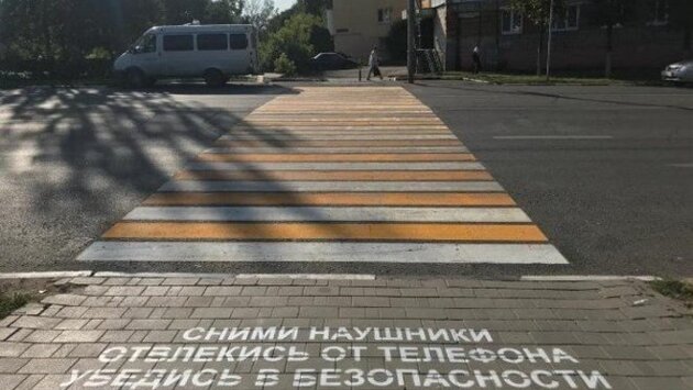 В Татарстане перед пешеходными переходами появились надписи "Сними наушники" и "Отвлекись от телефона"