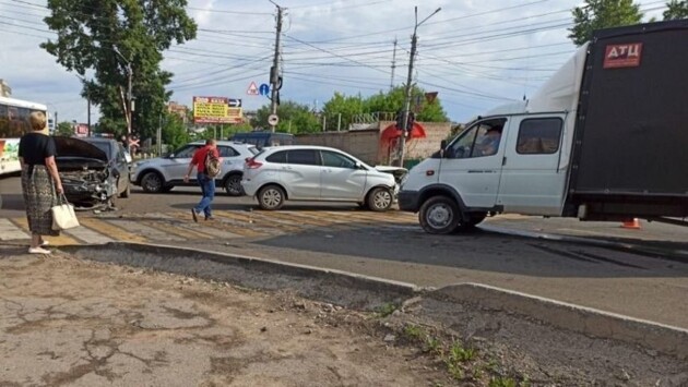 Из-за лобового столкновения на углу Блюхера и Ленина образовалась пробка