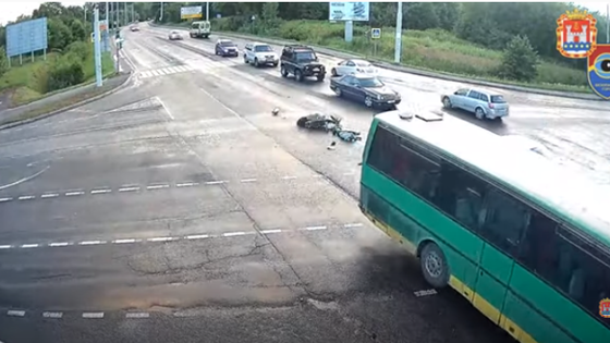 В Калининграде жесткое столкновение мотоцикла и автобуса попало на видео