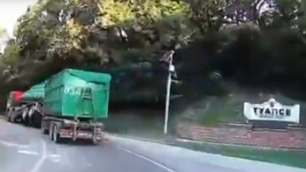 На трассе Джубга — Сочи, на самом въезде в Туапсе, перевернулся грузовик КАМАЗ с прицепом. Авария произошла 26 июля. По предварительным данным водитель грузовика не справился с управлением и машина перевернулся на горном серпантине. Момент аварии попал в объектив видеорегистратора попутного автомобиля. По предварительным данным, в аварии никто не пострадал.