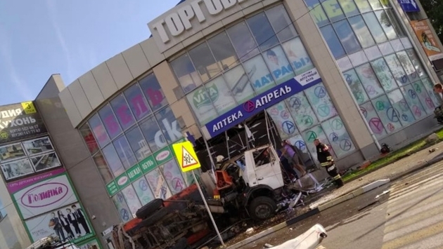 В Ростовской области грузовик протаранил торговый центр, водитель погиб
