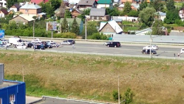 Как сообщает портал НГС со ссылкой на читателя, несколько ВДВ-шников сначала заблокировали движение, потом медленно поехали в сторону центра. на мосту образовалась пробка. "Вот так граждане ВДВ-шники решили отметить свой день. Перекрыли всю дорогу, считают, что все это нормально, и медленно продвигаются по дороге", - пишет читатель. На фотографиях видно, что на мосту стоят несколько машин с флагами, рядом с ними — люди в тельняшках. А далее на трех полосах автомобили выстроились в затор. Фото: из открытых источников