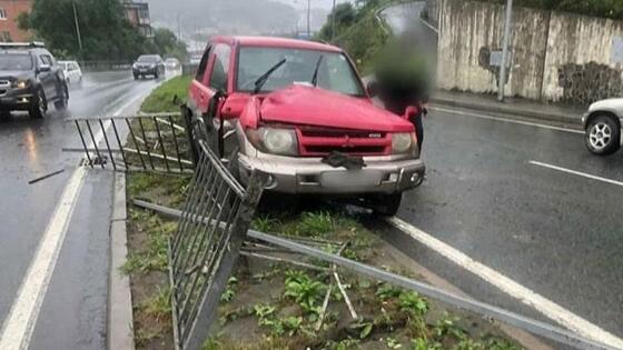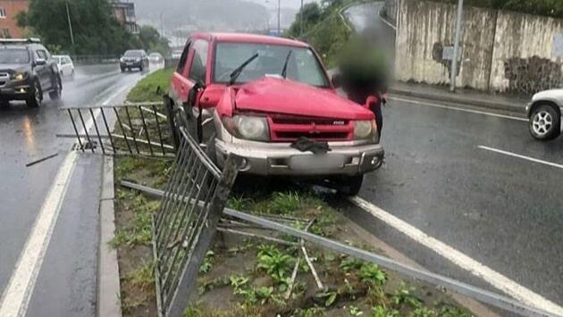 Во Владивостоке водитель не справился с управлением и снес леера