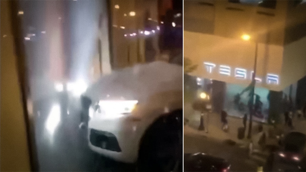 Видео: вандалы в США вломились в салон Tesla на Audi