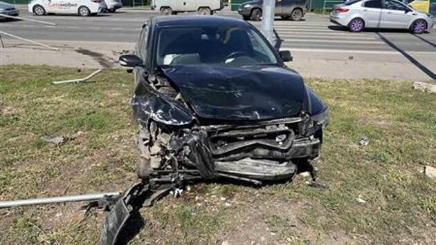На Красноглинском шоссе иномарку в ДТП отбросило на металлическое ограждение