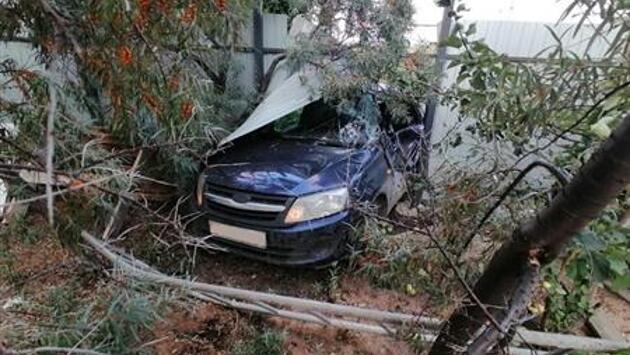 В Волжском районе КамАЗ вытолкнул "Гранту" с дороги в металлический забор