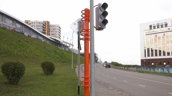 Установка нового светофора на выезде из ЖК «Кемерово-Сити»