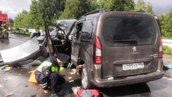 Четыре человека погибли сегодня в автомобильной аварии на трассе «Екатеринбург – Курган», еще четверо, из них трое детей, госпитализированы, сообщили в пресс-службе УГИБДД ГУ МВД РФ по Свердловской области. По данным инспекции, ДТП случилось около часа дня. На 103 километре трассы столкнулись два автомобиля. По предварительным данным, один из водителей машины «Хендай» на мокрой дороге в дождь, выбрав небезопасную скорость. От чего автомобиль вынесло на встречную полосу, где он столкнулся с «Пежо». В итоге, водитель «Хендай» и женщина-пассажир погибли на месте происшествия. Ехавший с ними 2-летний ребенок попал в больницу. Пассажирки из «Пежо» скончались на месте, водитель и двое детей 9 и 4 лет госпитализированы. Инспекторы выясняют все причины аварии, устанавливаются личности погибших и пострадавших. Сообщается, что в обоих машинах находились члены семьи. «На место серьезной аварии для установления обстоятельств выехали руководители Управления ГИБДД ГУ МВД России по Свердловской области во главе с начальником Алексеем Кисляковым», – сообщили в УГИБДД ГУ МВД России по Свердловской области. Напомним, сегодня на участке над трассой «Екатеринбург – Тюмень» установили мост для безопасности пешеходов. В 2019 году там из-за столкновения с машиной погиб один человек. Фото: пресс-служба УГИБДД ГУ МВД РФ по Свердловской области