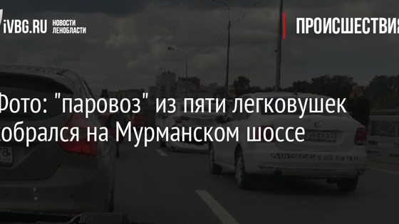 Фото: "паровоз" из пяти легковушек собрался на Мурманском шоссе