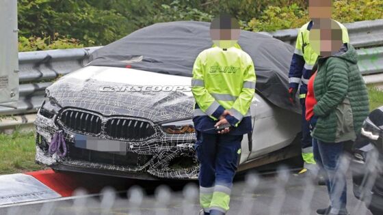 BMW M8 разбили на Нюрбургринге во время прохождения испытаний. Еще пару дней назад поклонники компании BMW обсуждали новый прототип, который появился на Нюрбургринге. Из-за особенностей строения многие полагали, что это будет среднемоторый автомобиль. Однако, производитель очень быстро развеял такие домыслы. Сегодня прототип опять привлекает большое внимание, но причина заключается уже не во внешнем виде - машина разбилась на трассе. Свидетели данного происшествия заявили, что автомобиль уходил то в левое, то в правое ограждение дороги, затем выехал на обочину и остановился. Снимки показывают, что у прототипа имеются повреждения передних крыльев, а очевидцы заявили о поломке подвески с задней стороны. Так как с такими повреждениями автомобиль не мог продолжать движение, его накрыли пленкой и отвезли. Напомним, что пару дней назад в BMW заявили, что пока нет никаких планов по созданию среднемоторной модели - эта информация расстроила очень многих поклонников производителя.