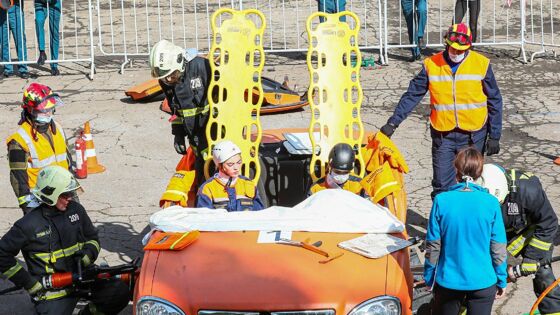 27 августа 2020 года прошли соревнования по проведению аварийно-спасательных работ на месте дорожно-транспортных происшествий. В региональном этапе состязаний приняли участие 14 сильнейших команд, прошедших отбор в учреждениях Департамента по делам гражданской обороны, чрезвычайным ситуациям и пожарной безопасности города Москвы, и подразделениях Главного Управления МЧС России по г. Москве. «К сожалению, аварии на дорогах не редкость и подразделения Департамента по делам гражданской обороны, чрезвычайным ситуациям и пожарной безопасности города Москвы оперативно выезжают, помогая людям, попавшим в беду. Спасатели знают, что травмы при ДТП очень опасны и счет идет на секунды. От правильности и оперативности работы специалистов зависит жизнь пострадавшего. Поэтому наши спасатели проводят специальные тренировки, а с 2007 года участвуют в городских соревнованиях. Благодаря участию в данных состязаниях, аварийно-спасательные и пожарно-спасательные отряды совершенствуют профессиональные навыки, что позволяет минимизировать негативные последствия чрезвычайных происшествий на дорогах», — отметил начальник службы применения пожарно-спасательных сил Департамента ГОЧСиПБ Александр Дергачев. Конкурсное задание было разработано организаторами исходя из реального опыта ликвидации ДТП разной сложности. Всем командам нужно было выполнить аварийно-спасательные работы с использованием специального оборудования на месте условного дорожного происшествия — быстро оценить ситуацию, выявить возможные угрозы взрыва или возгорания, деблокировать травмированных пострадавших, оказать им первую помощь. По итогам состязаний лучший результат при выполнении заданий показала команда ПСО № 209 Пожарно-спасательного центра Москвы, второе место у пожарно-спасательной части № 9, третье место завоевали ПСЧ № 36. Победители представят пожарно-спасательный гарнизон столицы на всероссийском этапе соревнований.