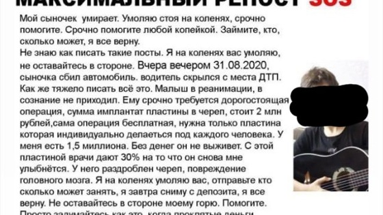 Мошенники взломали аккаунт жительницы Армавира, выдумали ДТП и собирают деньги на лечение ее маленького сына. Неизвестные взломали страницу в социальных сетях жительницы Армавира и разместили от ее имени просьбу о помощи с фотографией ее ребенка. Якобы сын женщины попал в серьезное ДТП, получил черепно-мозговую травму и ему срочно требуется операция по установке пластины в череп, которая стоит 2 млн рублей. Родственники и знакомые принялись обрывать телефоны, чтобы узнать, что же случилось. К счастью, ребенок на самом деле не попадал ни в какую аварию, с ним все в порядке. Однако доверчивые подписчики горожанки могли уже перевести деньги на указанный в объявлении номер карты. Такой способ мошенничества не нов. Аналогичные объявления всплывают и в других регионах, причем текст злоумышленники ставят один и тот же, сильно не заморачиваясь над выдумыванием новых подробностей. Призываем жителей Армавира не доверять информации, размещенной в Сети, даже если вы знаете этих людей: лучше позвонить им лично и все уточнить, прежде чем переводить деньги.