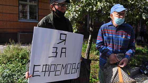 В Москве полиция предостерегла фанатов актера Михаила Ефремова, собравшихся возле здания Пресненского районного суда столицы, от проведения пикета. Об этом во вторник, 8 сентября, в своем Youtube- канале сообщает издание LIFE. Как следует из трансляции издания, женщины встали возле здания суда с черно-белыми плакатами с изображением совершившего смертельное ДТП актера. На плакате надпись — «ты не один». Полицейские, следящие за порядком возле здания суда, потребовали от группы поддержки не проводить пикеты и не нарушать 54-й федеральный закон о собраниях и митингах. Поклонницы Ефремова подчинились требованию полицейских и убрали плакаты. 8 сентября Пресненский районный суд столицы огласит приговор Михаилу Ефремову. Его адвокат Эльман Пашаев заявлял, что актеру грозит от шести до восьми лет колонии общего режима. Гособвинитель запросил для подсудимого 11 лет лишения свободы. Смертельное ДТП с участием актера произошло 8 июня. Его автомобиль вылетел на встречную полосу и столкнулся с фургоном, водитель которого, Сергей Захаров, скончался в больнице. Ефремов сначала покаялся в поступке, а затем заявил, что ничего не помнит о произошедшем. Позже он объяснил признание вины в смертельной аварии похмельем. Ранее сообщалось, что племянница актера Ольга Ефремова высказалась в защиту своего дяди и засомневалась в честности суда.