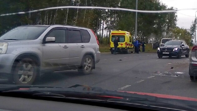 На фото и видео с места аварии видно, что туда приехали машина реанимации и пожарные. Официальной информации о ДТП на данный момент нет.