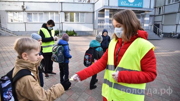 Юные инспекторы вручили светоотражатели ученикам школы №41 Вологды