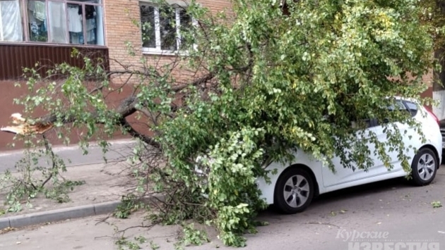 В Курске на улице Блинова на автомобиль упало дерево