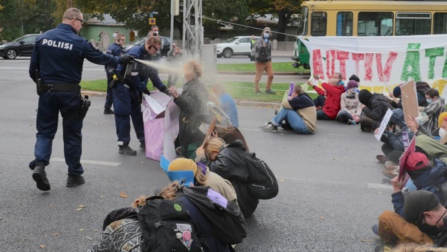 Демонстрантов уводили в полицейские машины, также против них применили газовые баллончики. Yle попытались получить комментарий у полиции Хельсинки в связи с произошедшим, но безуспешно. По данным организаторов задержано свыше 50 человек. Ранним вечером 3 октября полиция пресекла попытку нескольких десятков демонстрантов перекрыть улицу в центре Хельсинки. Часть митингующих, судя по опубликованному видео, увели с Кайсаниеменкату в полицейские автомобили. Кроме того, для разгона людей полиция применила газ, говорится в твиттере полиции Хельсинки. Полиция применила перцовый газ против демонстрантов на Кансаниеменкату. Фото от читателя Выступающие в защиту окружающей среды демонстранты перекрыли улицу Кайсаниеменкату, сев на проезжей части. Некоторые из них были прикованы друг к другу. Акция началась во второй половине дня на перекрёстке Кайсаниеменкату и Унионинкату. Демонстранты требовали немедленных действий против климатических изменений. На месте присутствовало нескольких полицейских патрулей. Акция затруднила движение автобусов и трамваев. Eiks tämä ole pahoinpitely? pic.twitter.com/2ch9kvHnf3 — Taneli Hämäläinen (@Tanelihamalaine) October 3, 2020 Международное движение Extinction Rebellion в октябре активизировалось вновь. Согласно их сайтам, их цель – организовать на следующей неделе крупную акцию в Берлине.