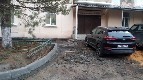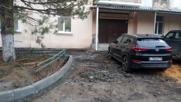 Автор отметил, что речь идет о травмпункте на улице Зои Космодемьянской. На снимках видно, что рядом с зданием учреждения полностью снято асфальтное покрытие и установлены новые бордюры. Однако, новый асфальт не уложен. Местами участки улицы засыпаны песком и щебнем. Автор не уточнил, когда именно начался ремонт тротуара.