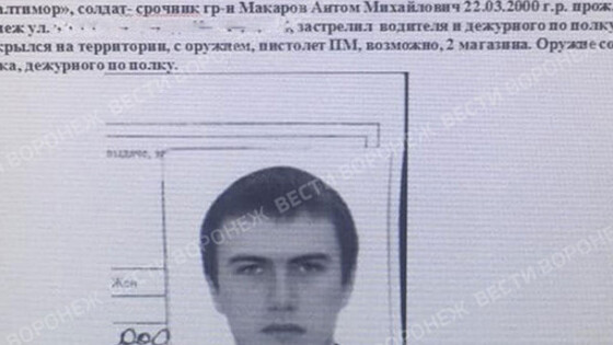 Солдатом-срочником, убившем трех человек в Воронежском аэропорту, оказался 20-летний Антон Макаров, пишет "Вести Воронеж" со ссылкой на ориентировку МВД по области. Мужчина прописан на улице 45 Стрелковой дивизии. Согласно документу, около 6.00 понедельника, 9 ноября, Макаров застрелил водителя и дежурного по полку, после чего скрылся. Возможно, с ним еще два магазина. Ранее стало известно, что в Воронеже солдат-срочник открыл стрельбу по людям.