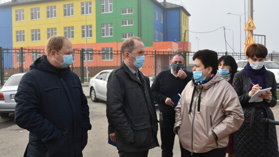 Делегация посетила строящийся детский сад на ул. Мичурина. По словам Игоря Седова, при строительстве необходимо подумать обо всей инфраструктуре вокруг детского сада: благоустроить территорию, организовать подъездные пути и тротуары.