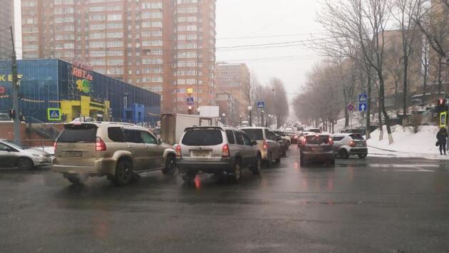 Движение затруднено в районе Второй Речки по проспекту 100-летия Владивостоку, улицам Русской и Постышева, в районе Некрасовского путепровода и Гоголевской развязки, в районе транспортных колец на Первой Речке, Партизанском проспекте и верхней станции фуникулера, в центральной части города, частично в микрорайоне «Снеговая падь» и по улице Борисенко.