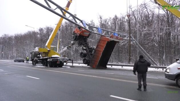 Свидетели сообщают, что водитель самосвала просто не заметил, что кузов поднялся, поэтому не успел предпринять меры. Когда кузов столкнулся с дорожной опорой, передняя часть транспорта подлетела на несколько метров вверх. Водитель в возрасте 56 лет был вынужден ждать помощи специалистов, чтобы выбраться из техники.