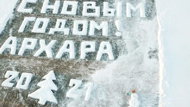 Но несмотря на трудности, открытку на льду архаринцы нарисовали. На ней местные художники написали скромное поздравление для своих земляков.