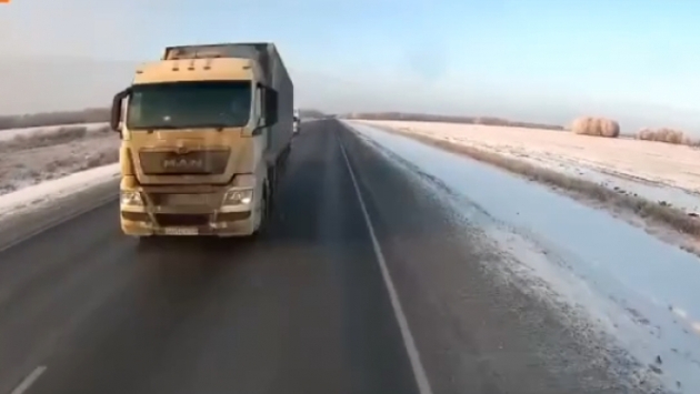 Появилось видео смертельного столкновения двух большегрузов на омской трассе