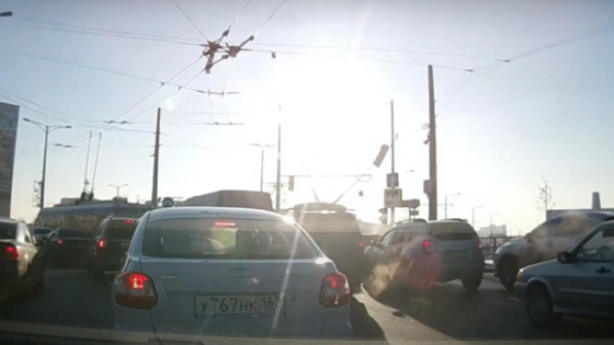 Самарец заснял на видео, как троллейбус сбил "рогом" светофор