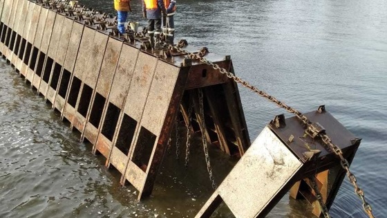Сотрудники ФГБУ «Канал имени Москвы» на северо-западе столицы осуществили установку в рабочее положение заградительных ворот гидротехнического сооружения. Об этом сегодня корреспонденту нашей газеты сообщили сотрудники канала. «Заградительные ворота № 116 находятся на Хорошевском спрямлении Москвы-реки и установлены для специальных санитарных и гидротехнических целей, а именно для предотвращения заиливания или заболачивания луки „Серебряный Бор“, а также для предотвращения разрушения береговых укреплений канала № 300 в период весеннего ледохода», — говорится в сообщении. Специалисты гидротехнического сооружения в настоящее время также проводят работы по ремонту знаков навигационной обстановки. Знаки помогают судам ориентироваться во время движения по акватории канала.