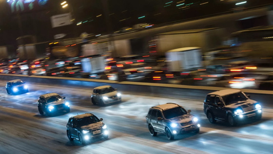 «На внешней стороне 30 км МКАД в районе пересечения с Востряковским проездом перекрыто движение застрявшими грузовыми транспортными средствами по четырем рядам. Затор возник из-за сильного ночного снегопада», - говорится в сообщении.