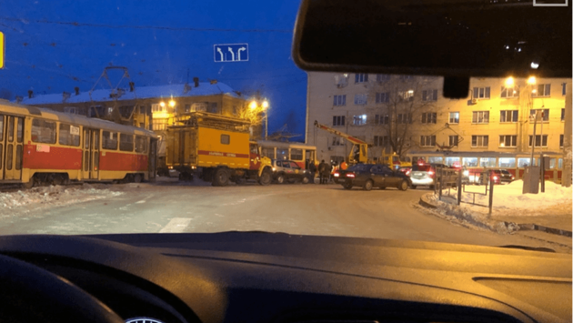 Сошедший с рельсов трамвай создал гигантскую пробку на Уралмаше