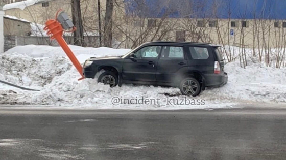 Иномарка врезалась в светофор в результате ДТП в Кемерове