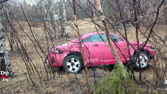 В Петрозаводске автомобиль после ДТП перелетел через тротуар и приземлился в лесополосе