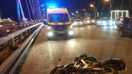 Во Владивостоке пьяный мотоциклист протаранил два авто на Золотом мосту