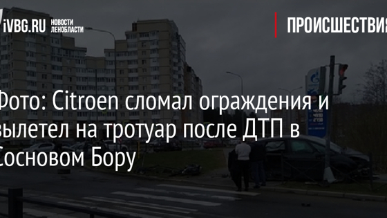 Фото: Citroen сломал ограждения и вылетел на тротуар после ДТП в Сосновом Бору