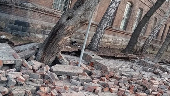 Рядом с историческим зданием психбольницы в Новосибирске обрушился кирпичный забор