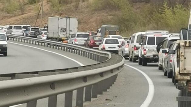 Все на дачи: мощная пробка образовалась на объездной трассе Патрокл – Седанка – Де-Фриз – п. Новый